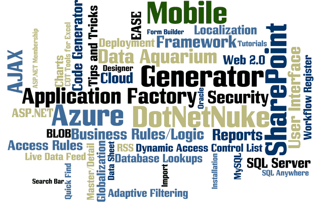 Take a quick look at the Azure Factory tutorial that will show the web application generator in action. We will show you how to generate and deploy a web application to Windows Azure Cloud. Instantly produce impressive business applications hosted natively in Microsoft SharePoint intranet portal. You can also easily build line-of-business web modules for the popular content management system DotNetNuke.